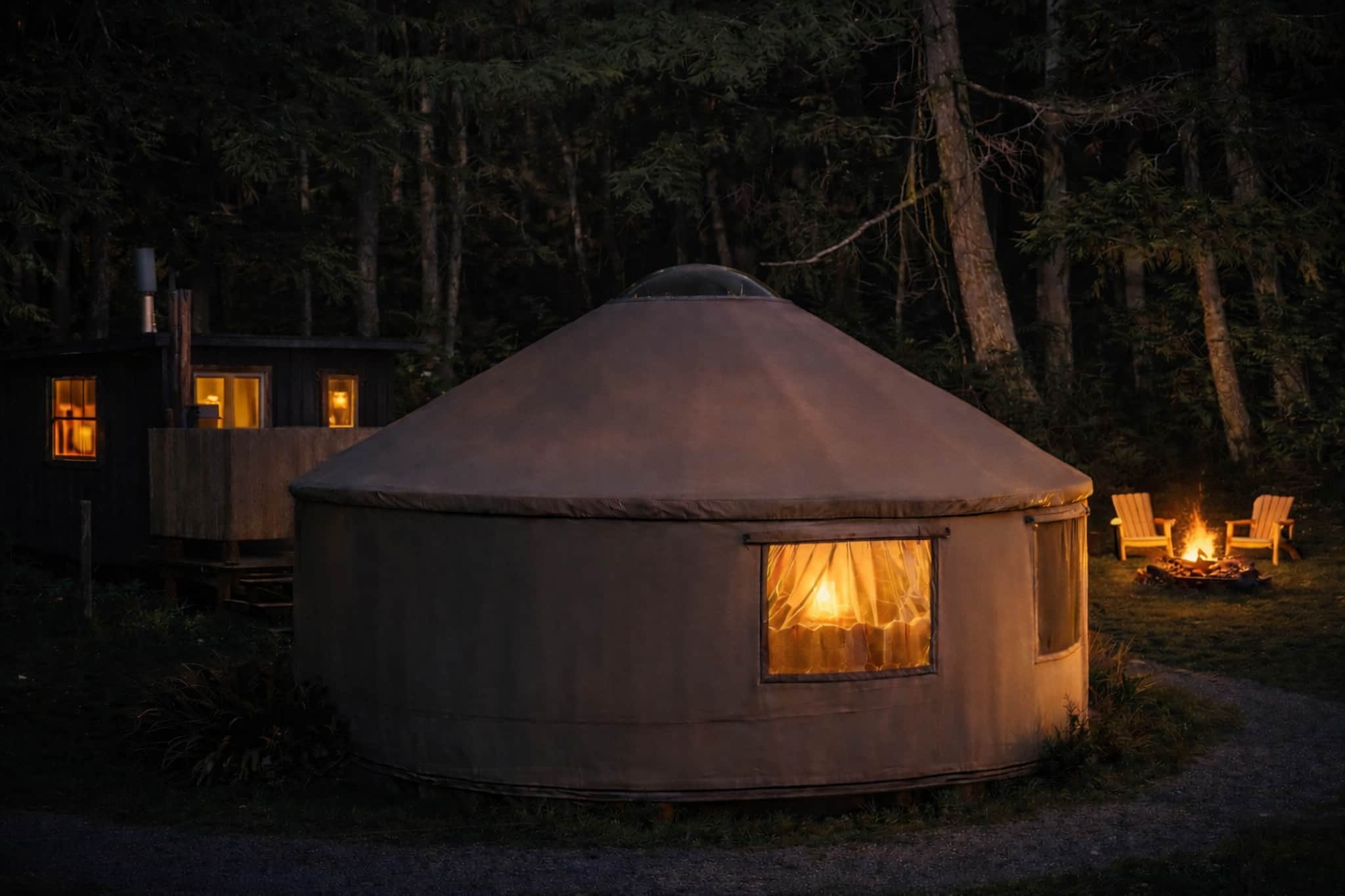 Tucked into a quiet forest clearing on Whidbey Island, this handcrafted yurt offers a cozy escape beneath towering evergreens and open night skies.